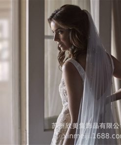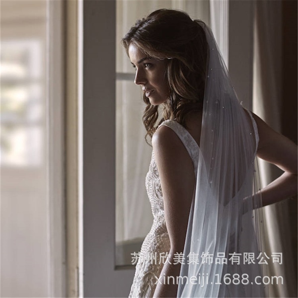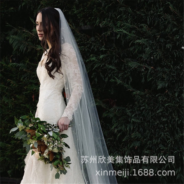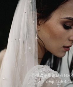 VOAN DÀI ĐÍNH HẠT TRAI 1 LỚP VOAN LÚP CÔ DÂU MÀU TRẮNG – 200CM Có Cài
