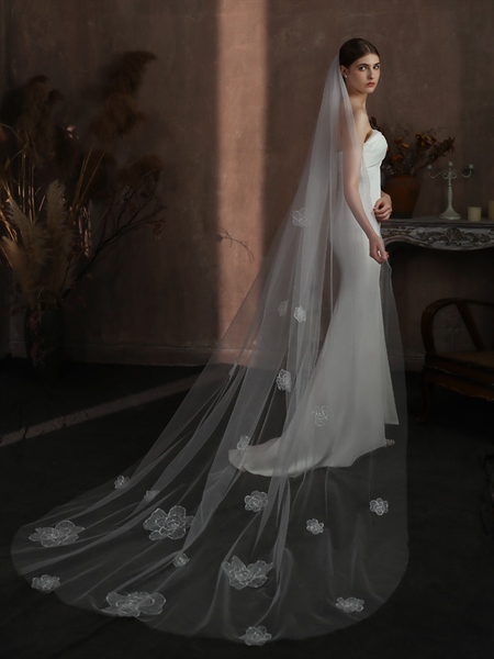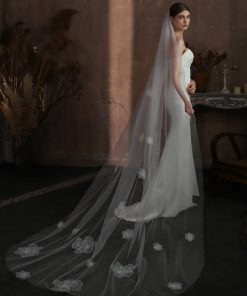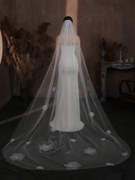 VOAN DÀI ĐÍNH HOA REN 1 LỚP 270CM VOAN LÚP CÔ DÂU MÀU TRẮNG –