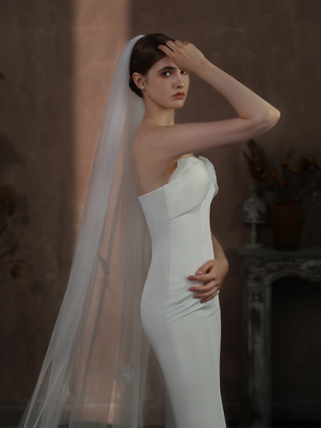 VOAN NHŨ DÀI ĐÍNH NGỌC 1 LỚP 300CM VOAN LÚP CÔ DÂU MÀU TRẮNG –