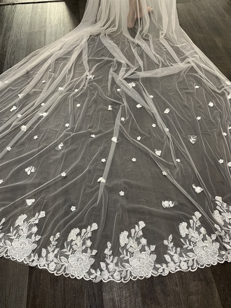 VOAN DÀI KẾT HOA NHÍ VIỀN REN CAO CẤP 1 LỚP 350CM VOAN LÚP CÔ DÂU MÀU TRẮNG KEM –