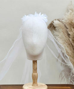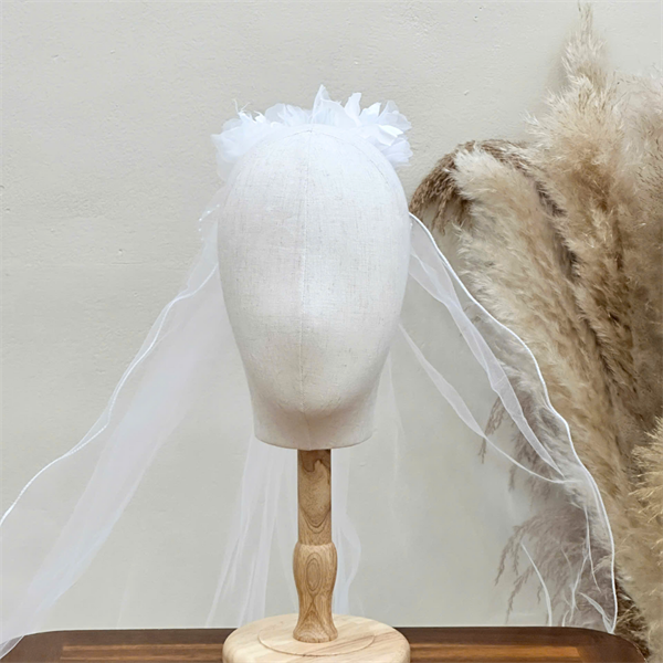 Voan Nhũ Phồng 2 Lớp Đính Cụm Ngọc Trai, Kích Thước 65cmx85cm, Voan Cài Tóc Cô Dâu Màu Trắng –