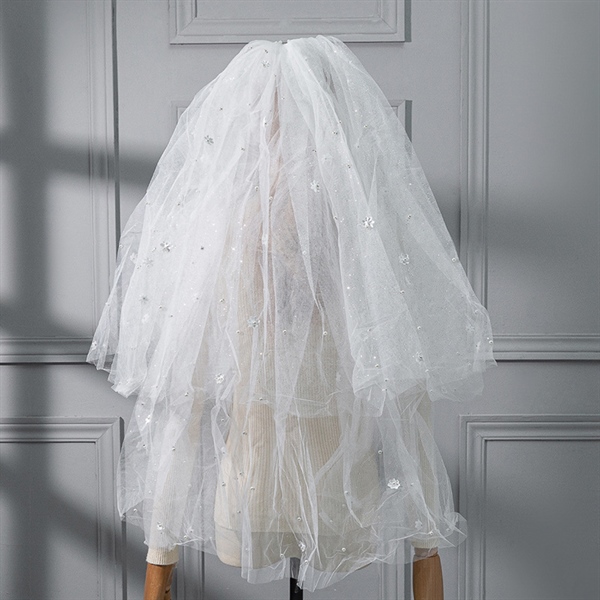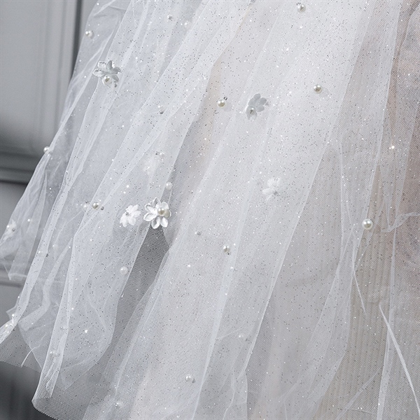 Voan Nhũ 2 Lớp Đính Ngọc Trai Mix Hoa Nhí –