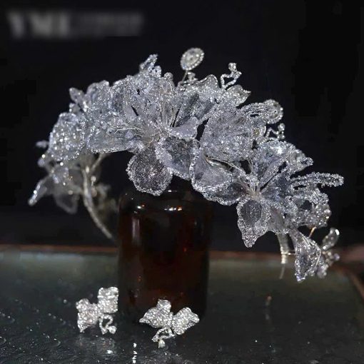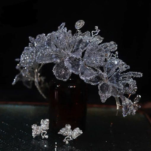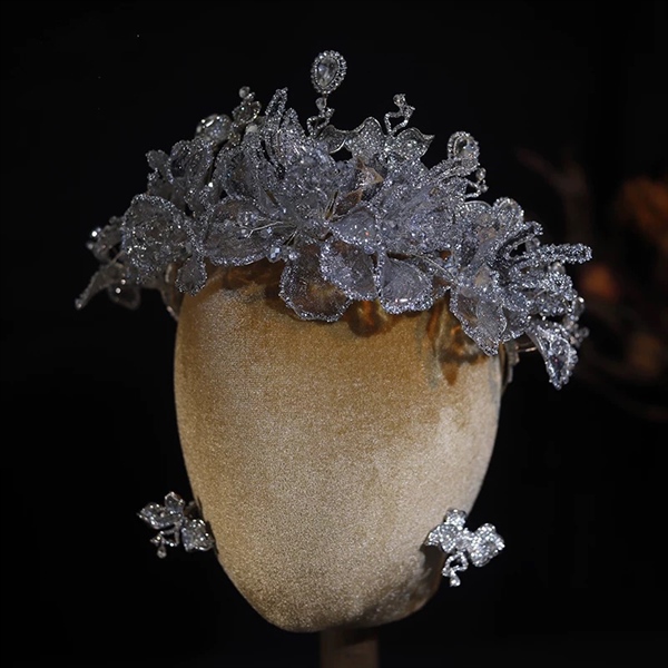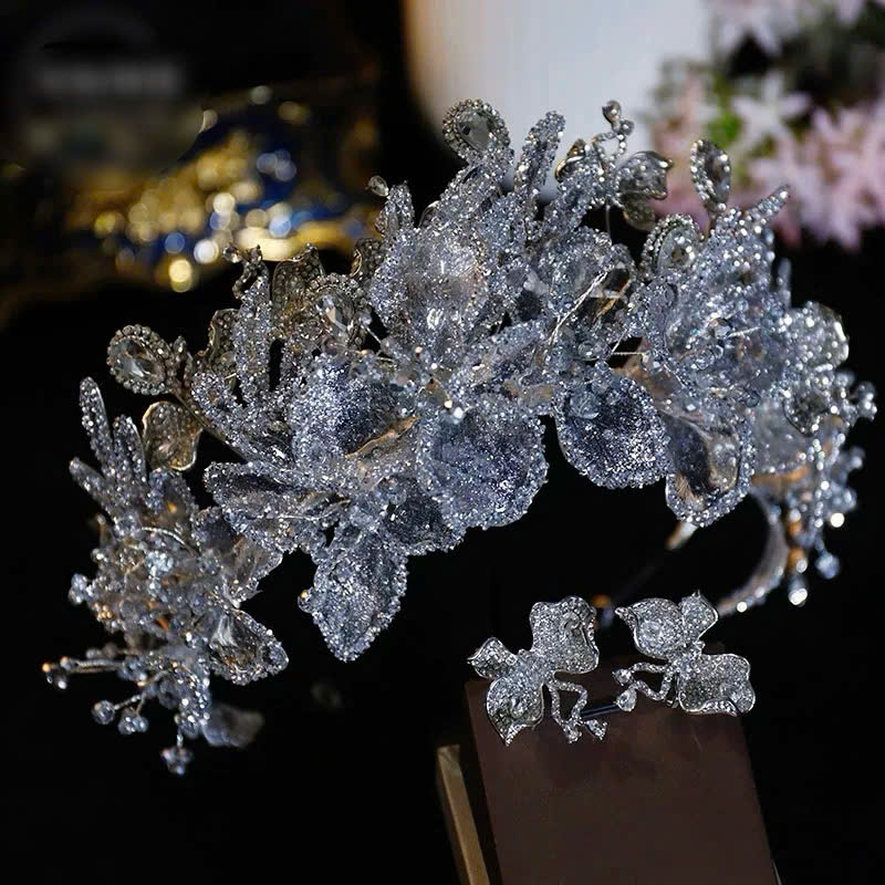 Vương Miện Đá Hồ Điệp Mix Hoa Tuyết Cao Cấp Kèm Bông Tai