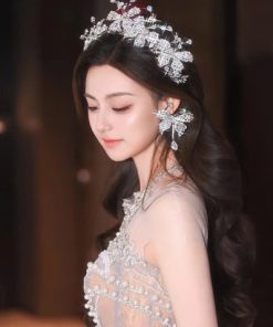 Vương Miện Lá Thiếc Đính Đá Mix Phale Cao Cấp Kèm Bông Tai
