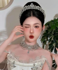 Vương Miện Hoa Đá Kèm Bông Tai Hoa