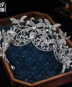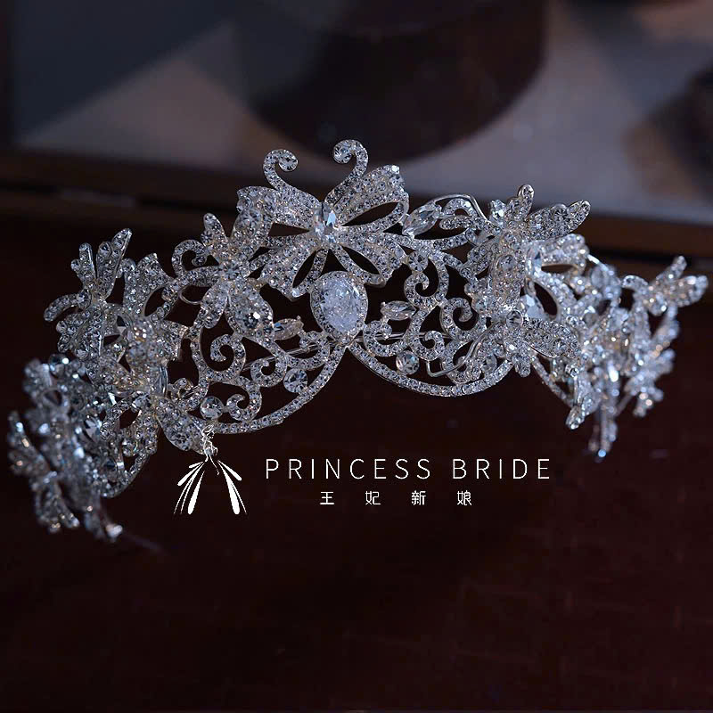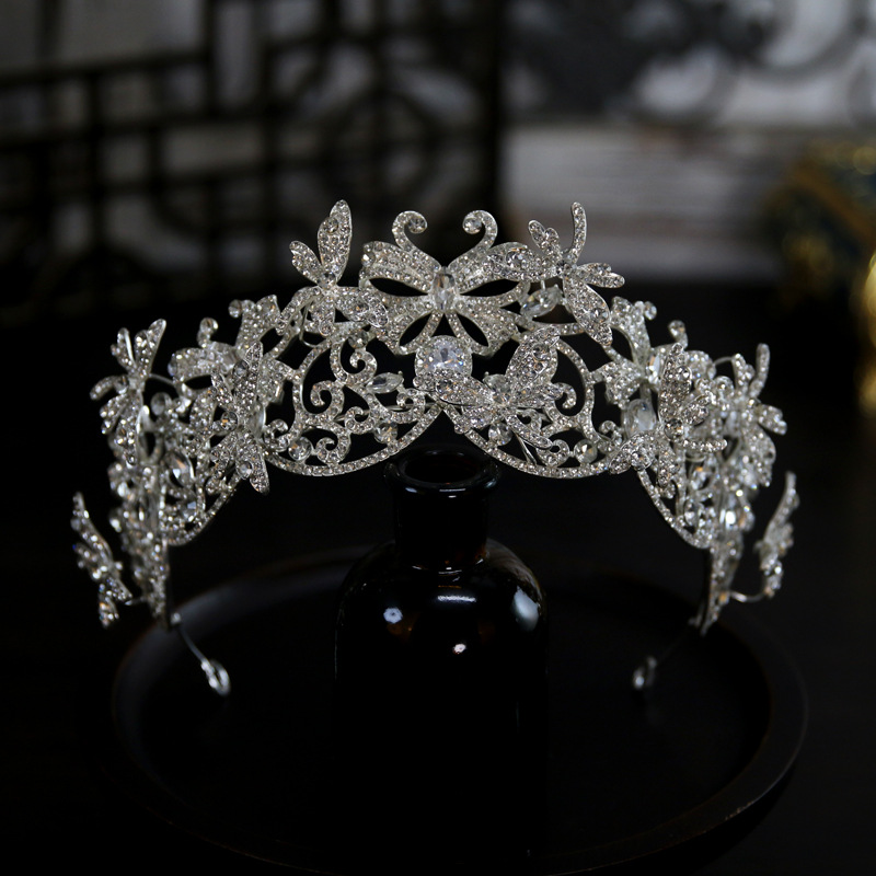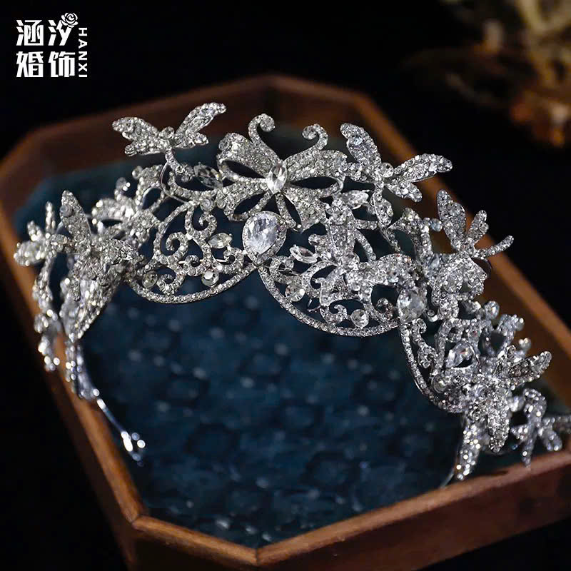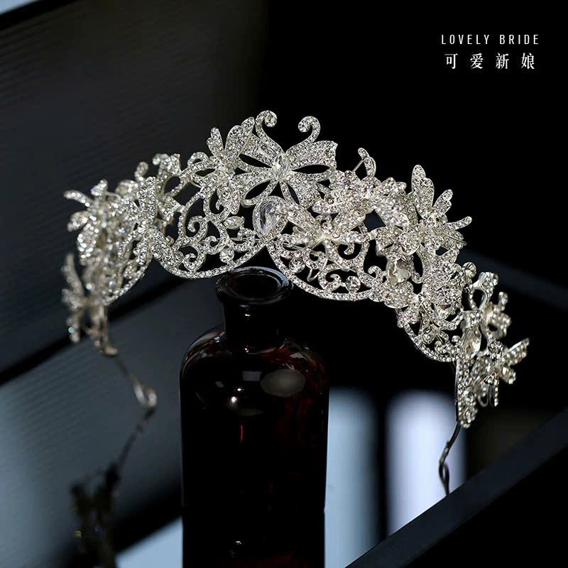 Vương Miện Hồ Điệp Trong Suốt Mix Đá Và Lông Vũ Kèm Bông Tai
