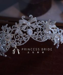 Vương Miện Hoa Đá 3cm Đính Ngọc Trai Kèm Bông Tai