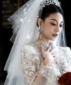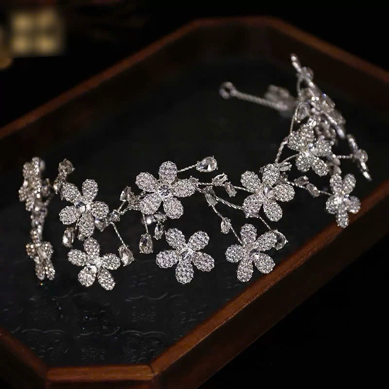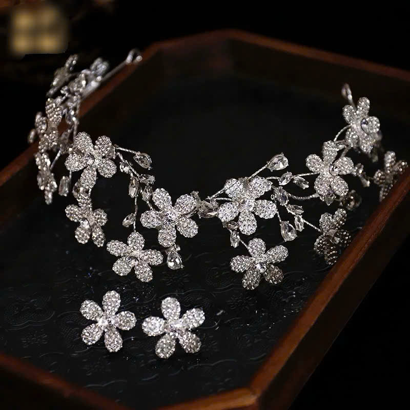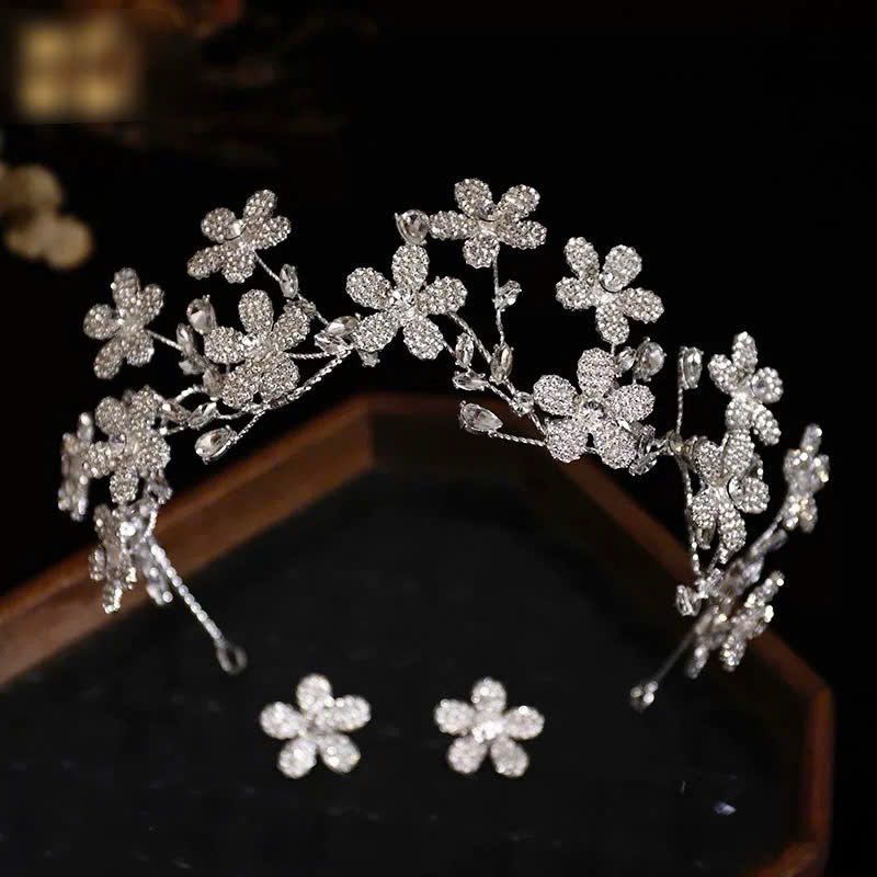 Vương Miện Hoa Đá Kèm Bông Tai Hoa