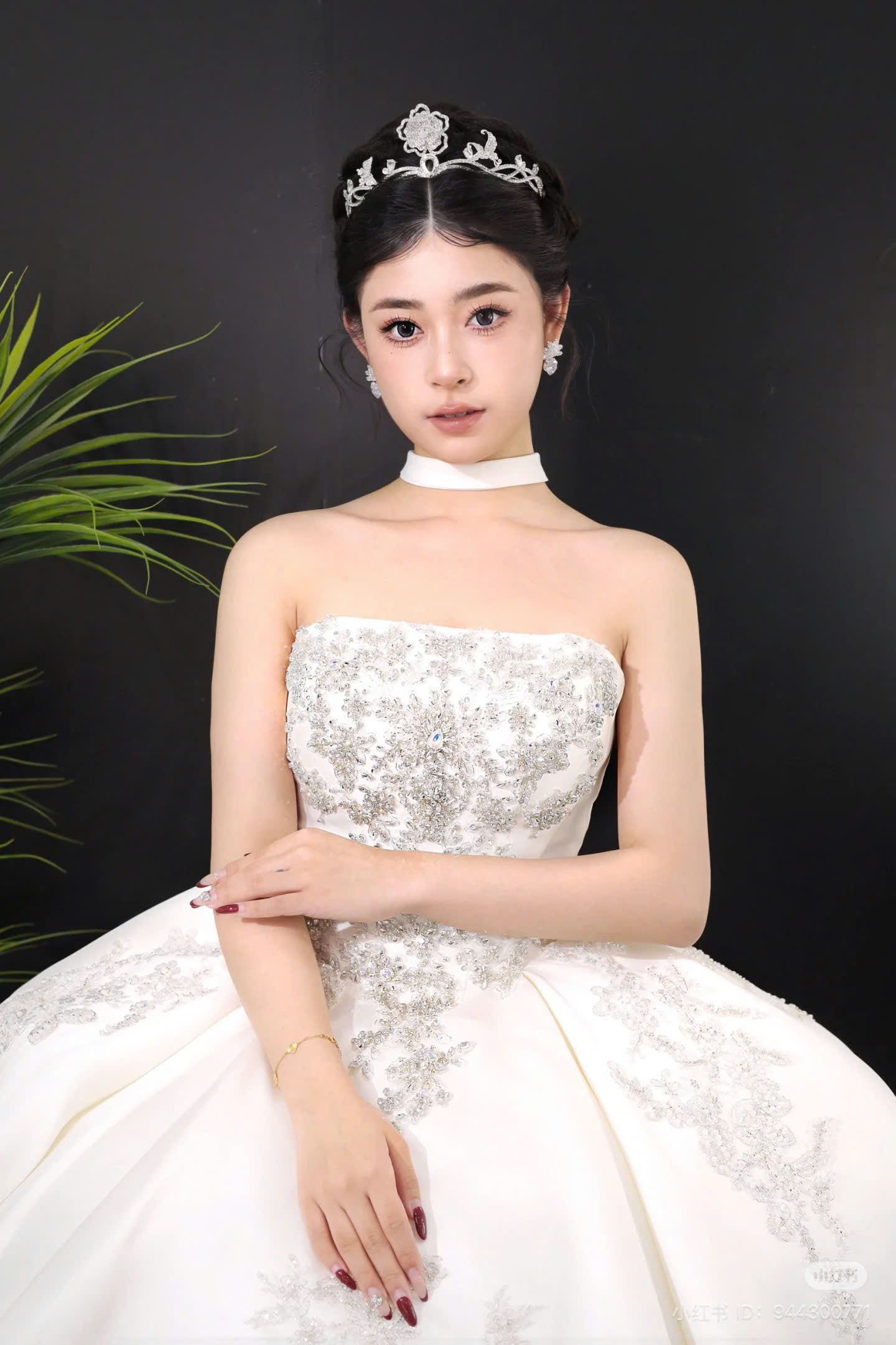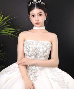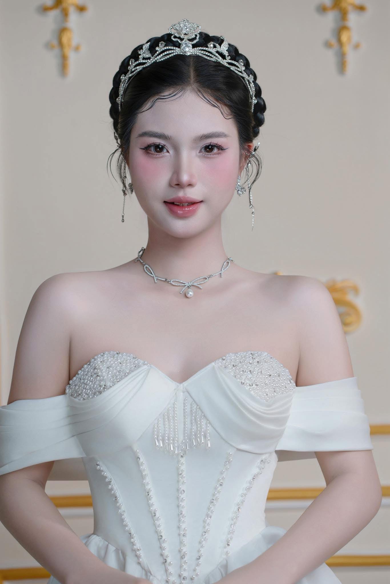 VƯƠNG MIỆN LÁ ĐÍNH ĐÁ KẾT HỢP REN PHALE –