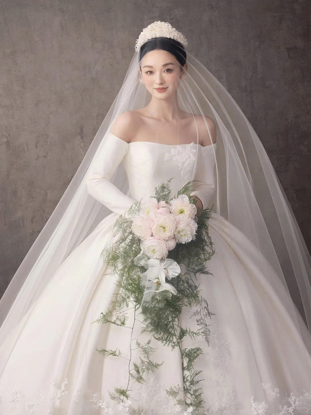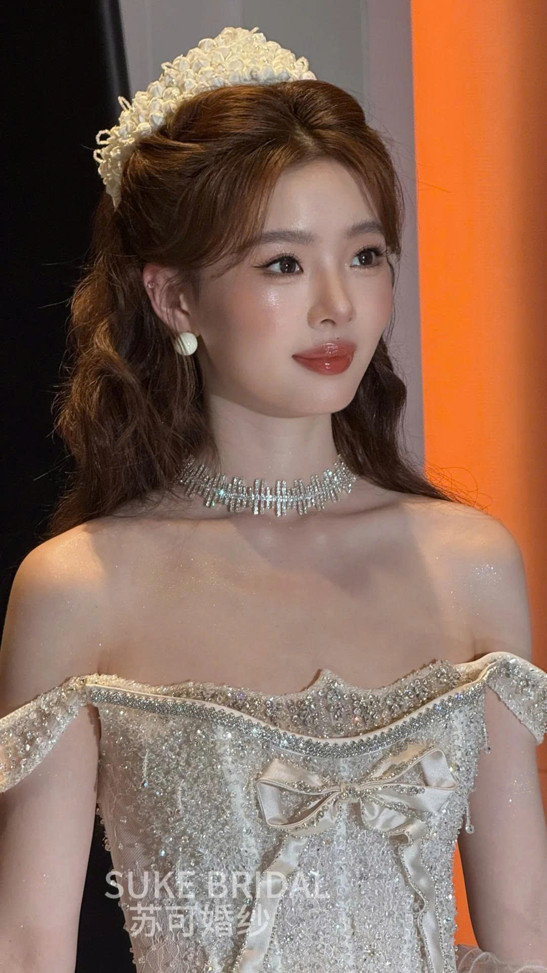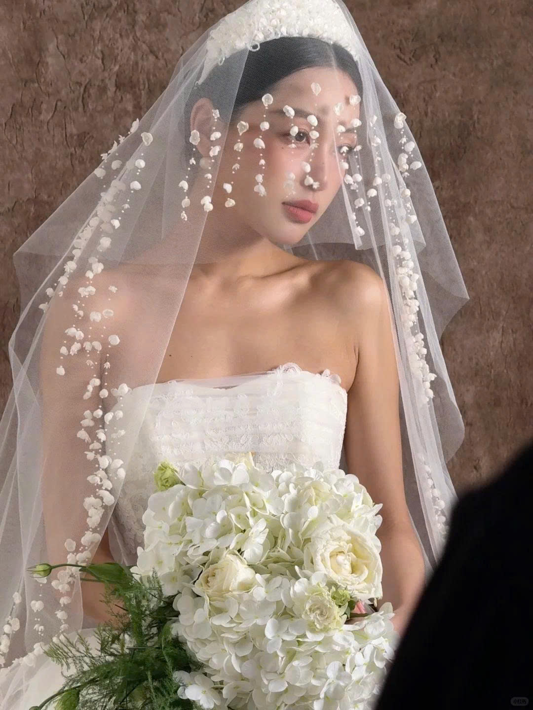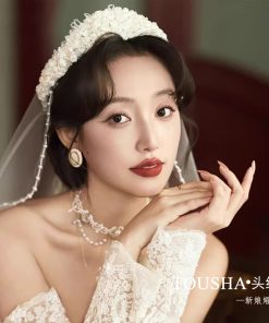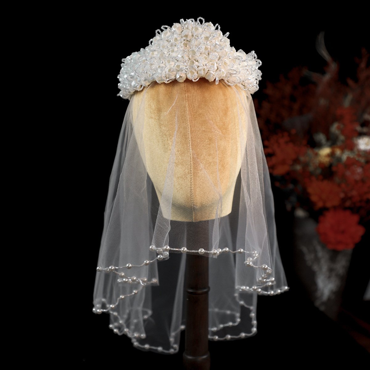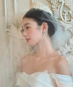 Vương Miện Hoa Linh Lan Kèm Voan 1 Lớp Viền Ngọc Trai
