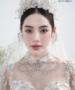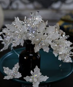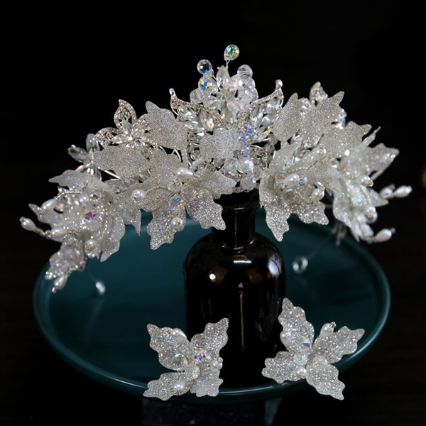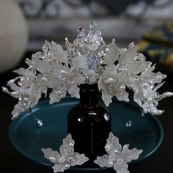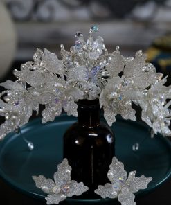Vương Miện Đá Hồ Điệp Mix Hoa Tuyết Cao Cấp Kèm Bông Tai