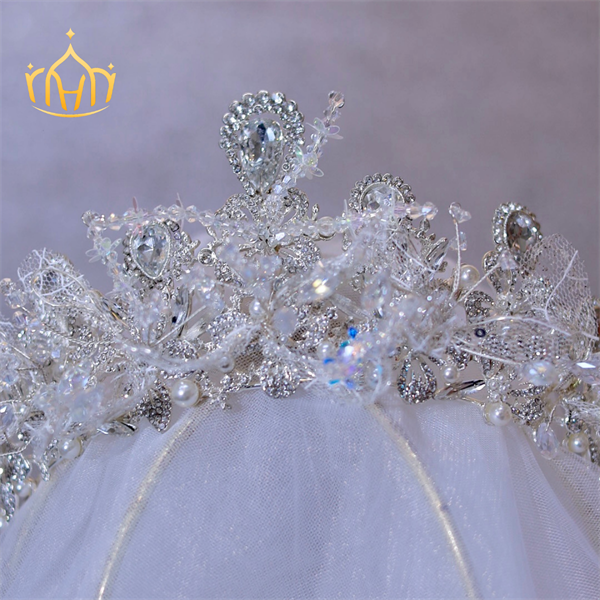 Vương Miện Hoa Đá 3cm Đính Ngọc Trai Kèm Bông Tai