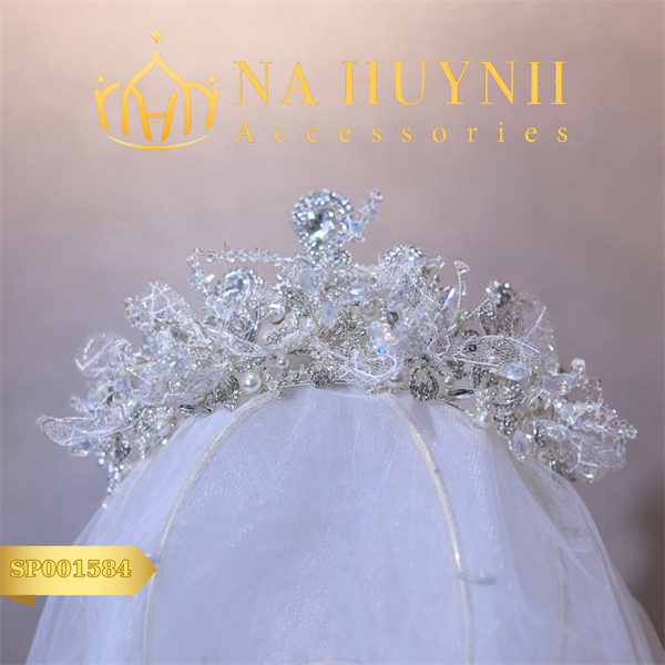 Vương Miện Đá Hồ Điệp Mix Hoa Tuyết Cao Cấp Kèm Bông Tai
