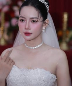 VƯƠNG MIỆN HOA NHŨ KẾT ĐÁ PHALE KÈM BÔNG TAI –