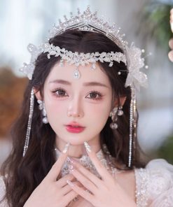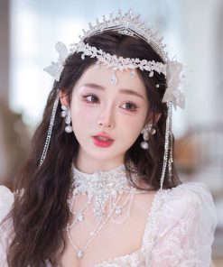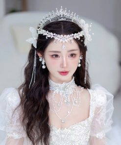 Vương Miện Đá Hồ Điệp Mix Hoa Tuyết Cao Cấp Kèm Bông Tai